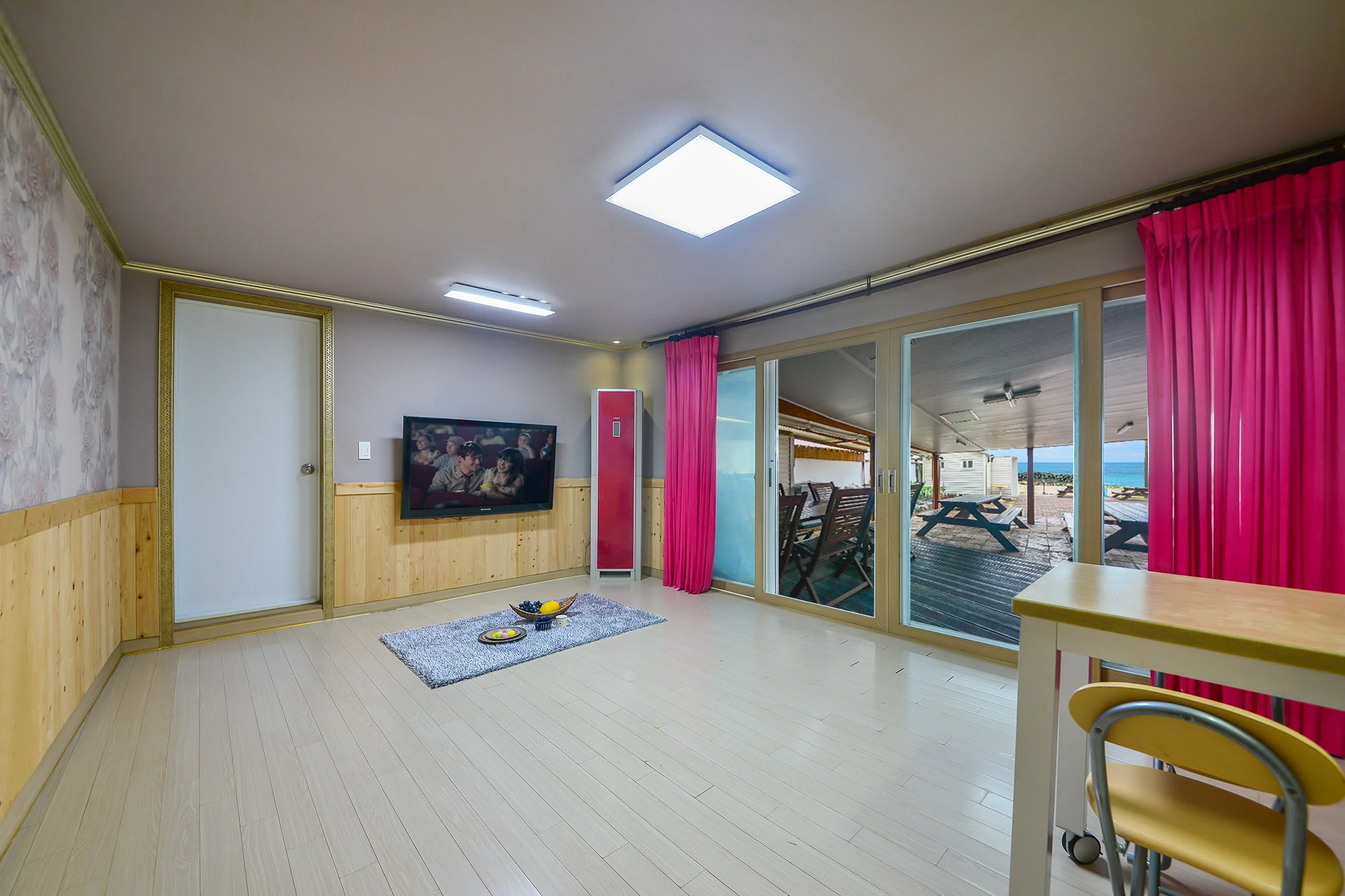 - 집기품목 : TV, 개별바비큐, 냉장고, 드라이기, 린스, 바디워시, 샴푸, 세면도구, 에어컨, 인덕션, 전기밥솥, 전자레인지, 취사시설/도구, 커피포트, 타월, 테라스, 욕실용품, 금연, 바다전망